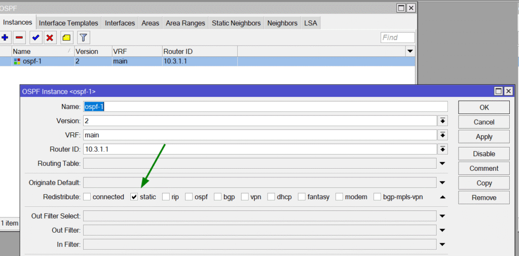 Lembrando que na versão 7 do RouterOS será necessário criar a “area 0” (backbone), caso a mesma ainda não tenha sido criada previamente.